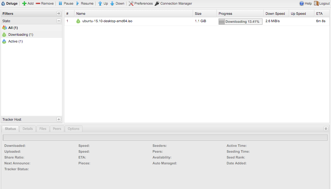 Deluge is a torrent download server. The best thing about Deluge is how client-server oriented it is. You can connect to a Deluge server through the desktop app or the web interface. Torrent is great from the Raspberry Pi because it’s always wired into the network and is on 24/7.